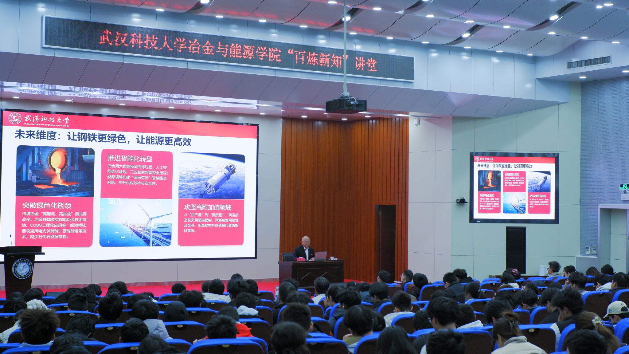 武科大网讯 12月6日,校党委书记倪红卫出席365上市公司官网“百炼·新知”讲堂,为学院2025级全体学生作题为“熔铸华夏脊梁 赋能绿色未来——新时代冶能人的使命与担当”的专题报告。