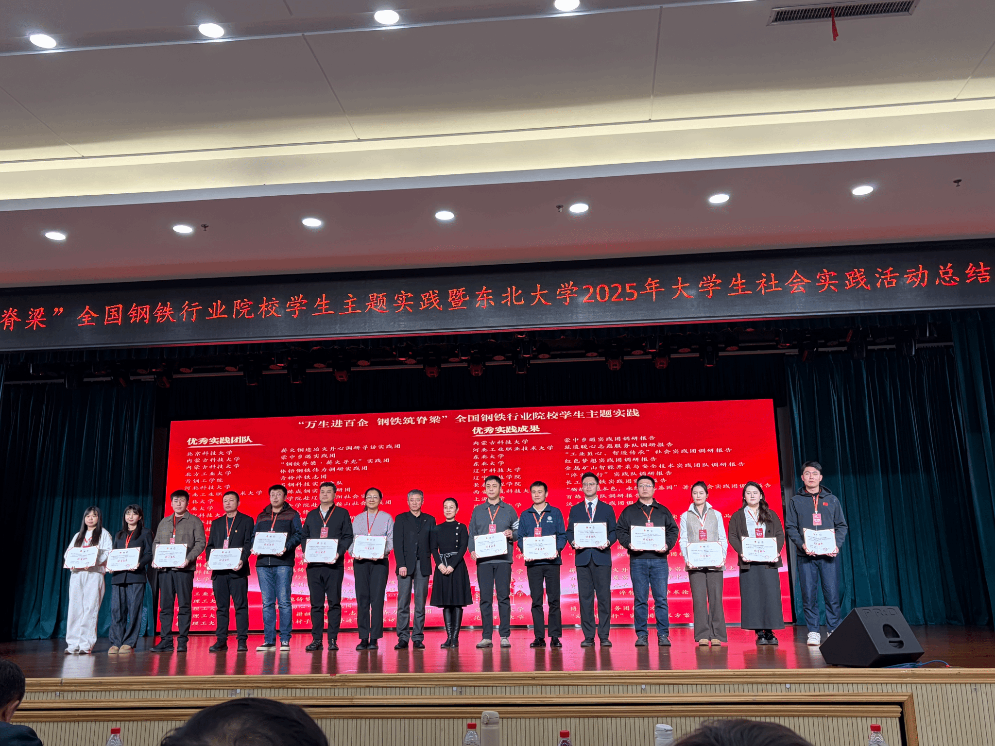 (通讯员 赵亚宾)12月4日,2025年“万生进百企、钢铁筑脊梁”全国钢铁行业院校学生主题实践总结表彰大会在东北大学开展,我校365上市公司官网“淬火青春”社会实践团、材料学部“钢魂铸梦”调研实践团荣获“优秀团队奖”。